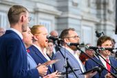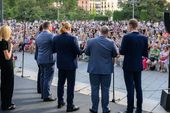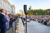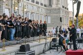 Numerosos visitantes se reunieron en la Plaza de Oriente para escuchar las melodías del coro de Greifswald, el renombrado Ensemble Nobiles y el Coro de Voces Graves de Madrid. Bajo la dirección de Paul Heller, miembro del Ensemble Nobiles, y Juan Pablo de Juan, director de las Voces Graves de Madrid, los coros ofrecieron un variado programa que abarcó desde obras de Bach hasta composiciones de Händel, Beethoven y Schütz, pasando por piezas contemporáneas.