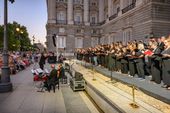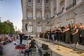El pasado domingo 14 de septiembre tuvo lugar un evento musical destacado en el Palacio Real de Madrid. Con motivo del 275 aniversario de la muerte de Johann Sebastian Bach, la Fundación Goethe, en colaboración con el Patrimonio Nacional y la Oficina Nacional Alemana de Turismo, organizó un concierto coral con la Puerta del Príncipe como telón de fondo.